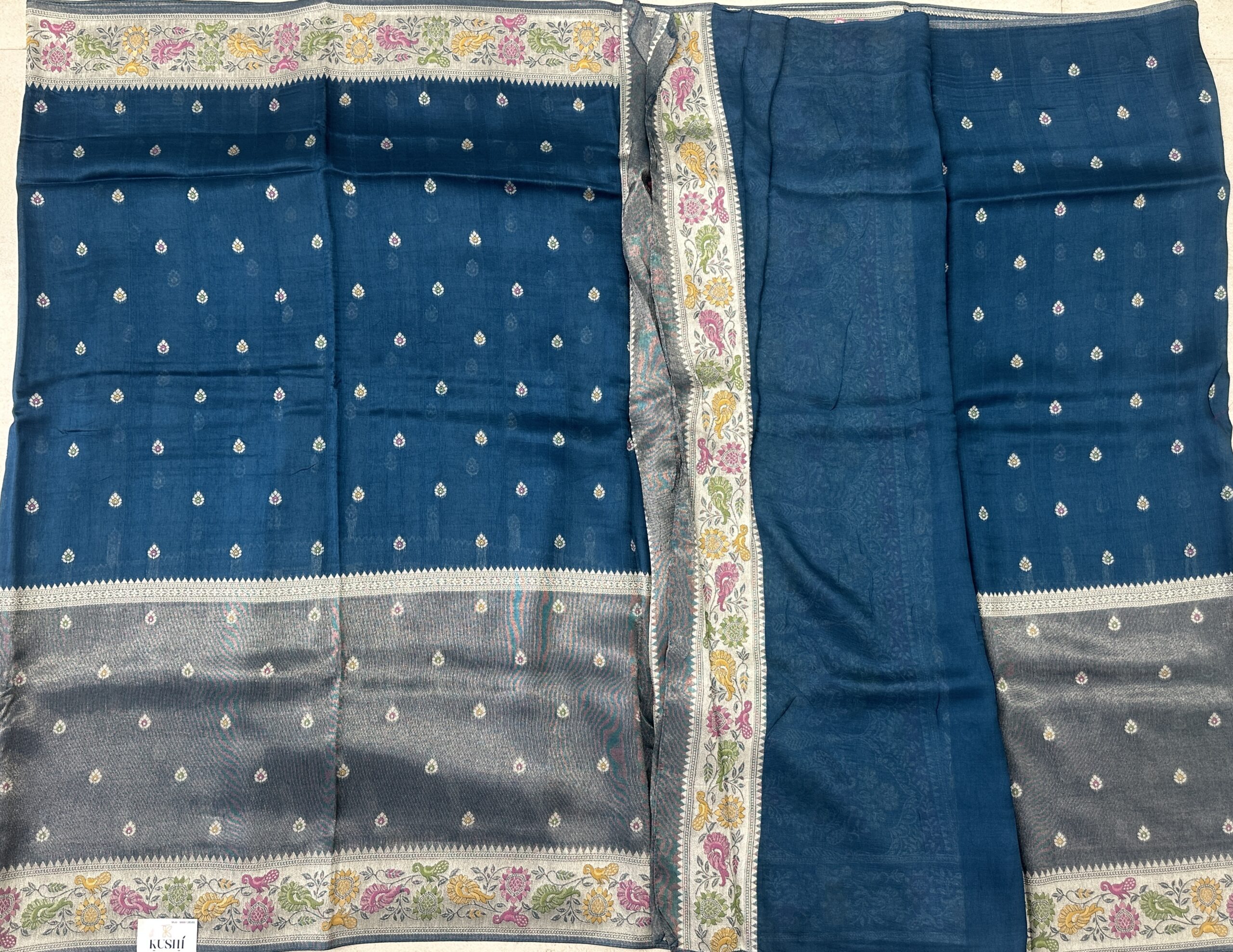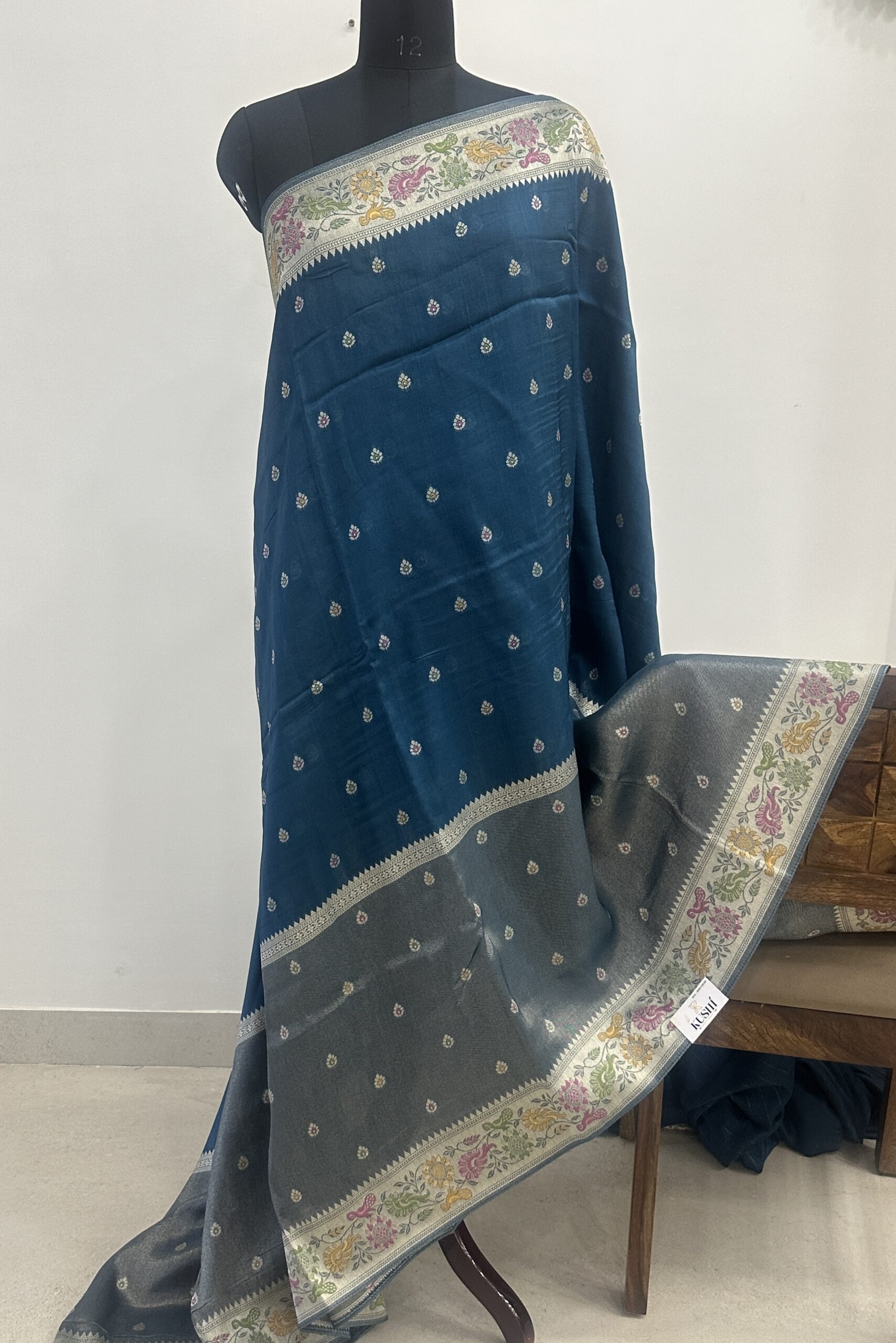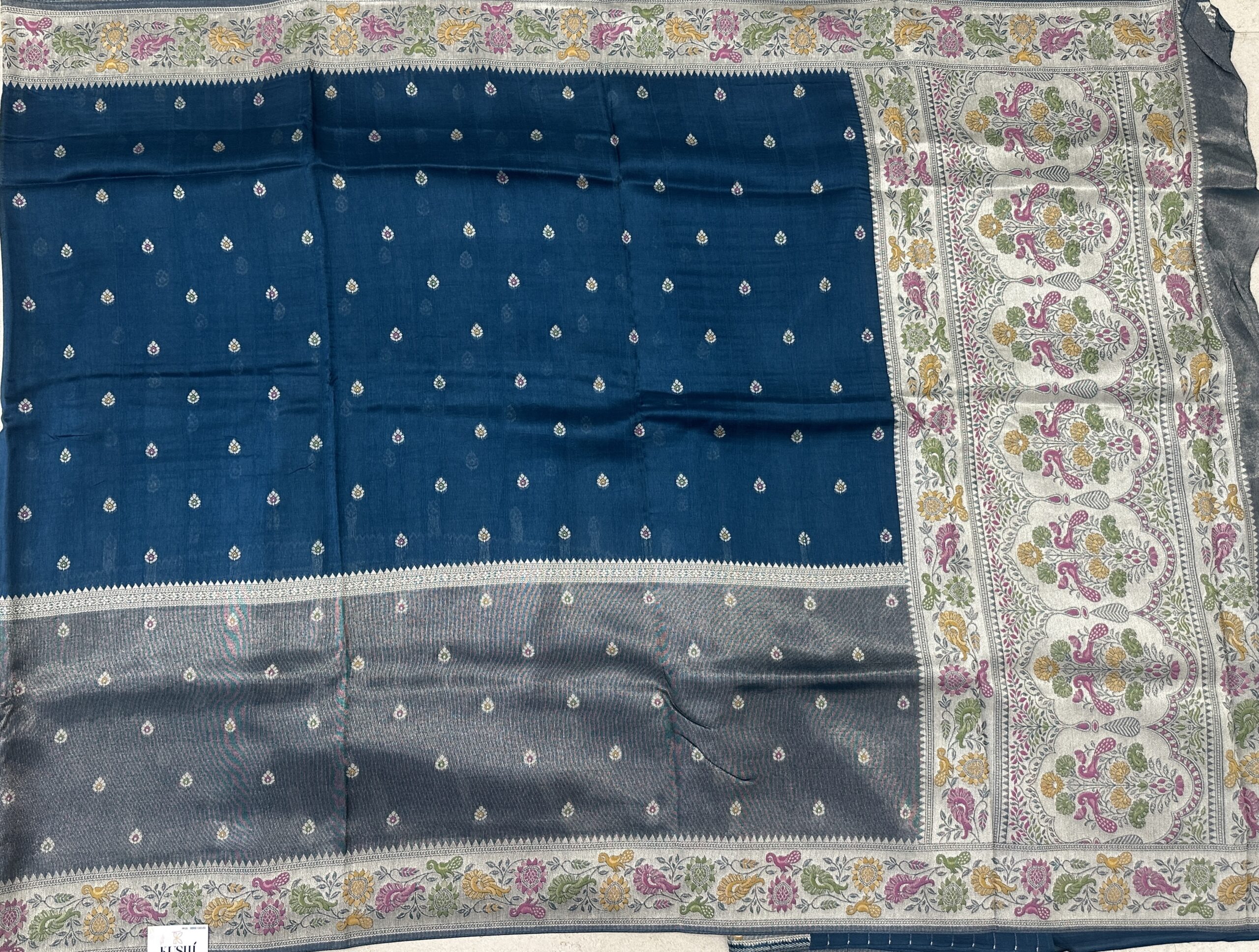 Banarase fancy blue color all over big border saree