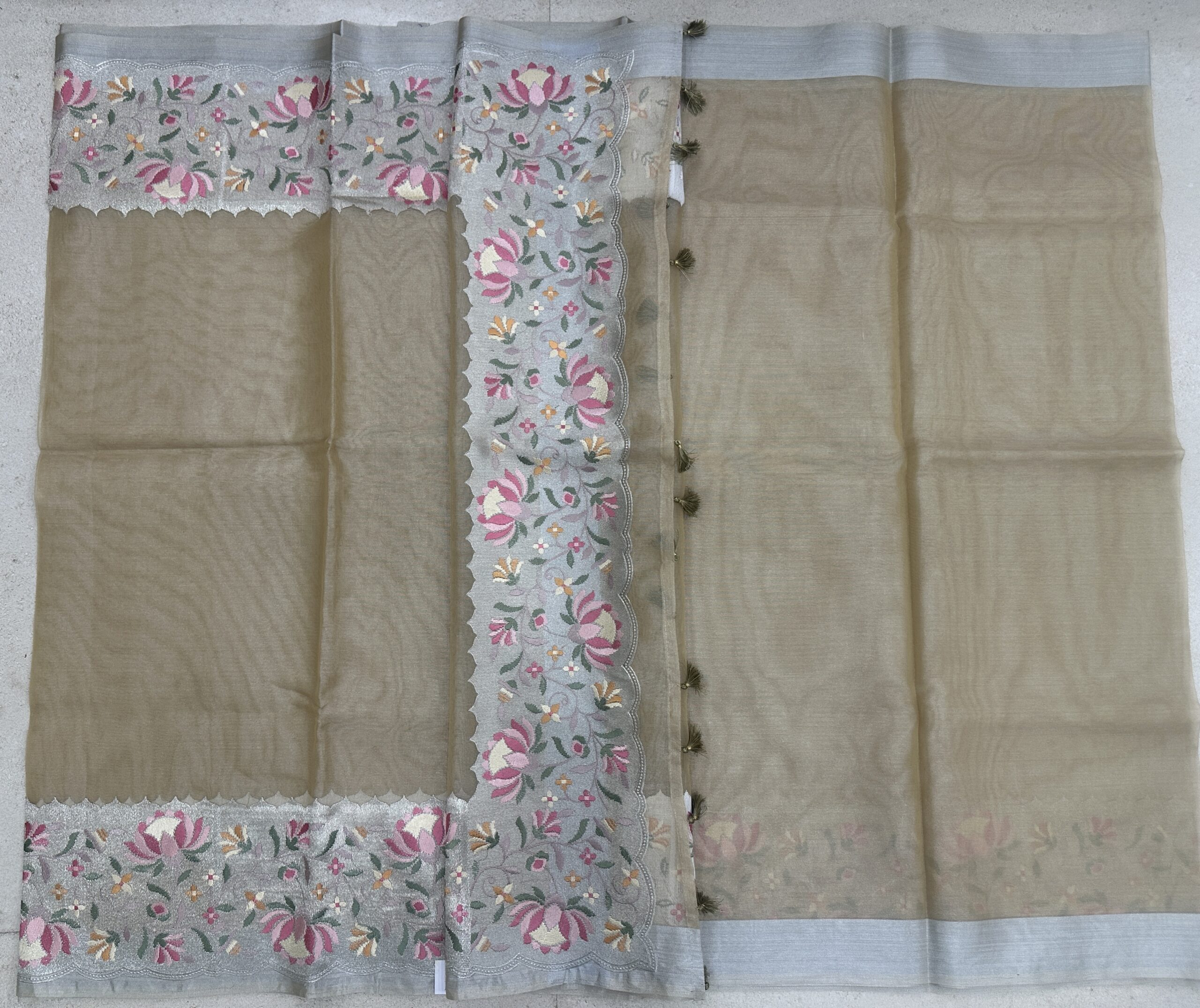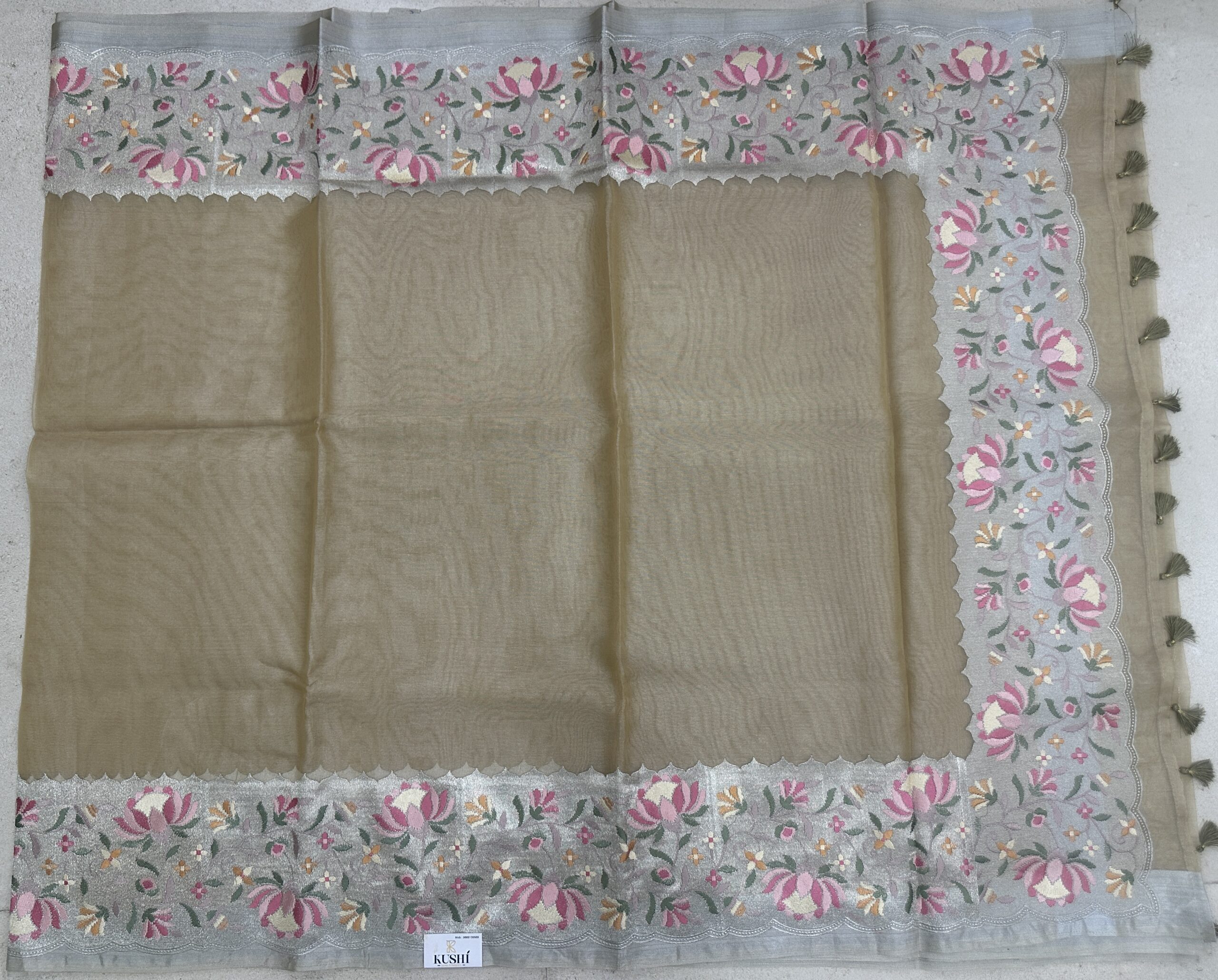 Cream fancy saree with big border quantity